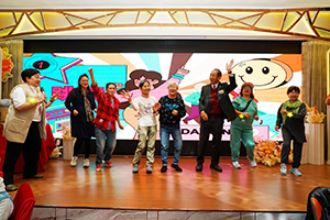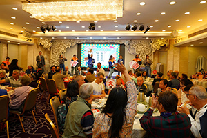 圖一及圖二:一眾管理層與長者以歌會友,更與參與活動的長者上台大展舞技,令全場氣氛高漲。